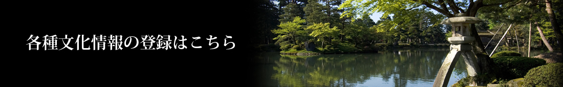 「いしかわの文化」に掲載する各種文化情報を募集しています。掲載をご希望の方は、登録申込書をダウンロードし、必要事項をご記入のうえ、電子メール、FAXまたは郵送でお送りください。